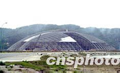 將于2005年在澳門舉行的“第四屆東亞運動會”各項籌備工作正在順利進行,圖為第四屆東亞運動會主場館--澳門東亞運體育館經過一年多時間的施工,目前正在鋪設體育館穹頂外殼。作者:李剛