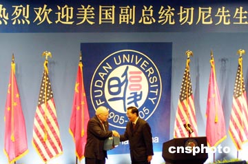 中新網(wǎng)4月15日電 來自上海的最新消息說,美國(guó)副總統(tǒng)切尼15日上午在復(fù)旦大學(xué)開始演講。