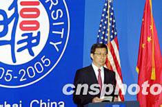 二十年前,時(shí)任美國(guó)總統(tǒng)的里根在復(fù)旦大學(xué)講壇上發(fā)表演講,中美正走向發(fā)展;滄海桑田,經(jīng)歷了風(fēng)風(fēng)雨雨的中美關(guān)系獲得長(zhǎng)足發(fā)展,并帶給兩國(guó)人民實(shí)際利益。今天,在這所中國(guó)著名高等學(xué)府將迎來(lái)百年華誕之際,來(lái)訪的美國(guó)副總統(tǒng)切尼亦于此舉行演講。