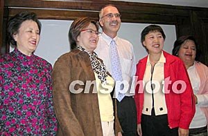 成功救回香港鳳凰衛(wèi)視女主播劉海若一命的大陸名醫(yī)、北京宣武醫(yī)院神外科主任凌鋒(右二),目前在臺灣進(jìn)行學(xué)術(shù)交流。四月十五日,她與劉海若(左二)、劉海若母親(左一)、劉海若姐姐(右一)、SOS中國中心主任查爾斯等相聚。作者:黃少華