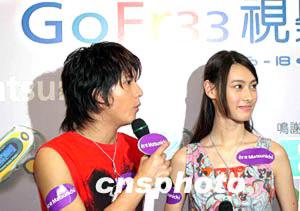 4月17日,香港樂壇Boy’z成員關智斌及新人Isabella(右)擔任松日公司MP3代言人。作者:譚達明
