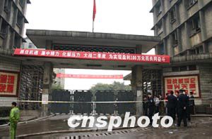 警戒線內(nèi)是發(fā)生事故的重慶市天原化工總廠。十五日晚,該廠發(fā)生氯氣泄漏事故,九人失蹤死亡,十五萬人撤離。作者:鄒輝