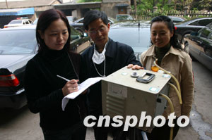 重慶市環(huán)保局局長(zhǎng)張紹志正在事故現(xiàn)場(chǎng)監(jiān)測(cè)空氣質(zhì)量。十五日晚,重慶市天原化工總廠廠發(fā)生氯氣泄漏事故,有十五萬(wàn)人撤離。作者:鄒輝