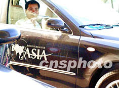 二○○四年四月二十二日,由遼寧沈陽華晨集團(tuán)提供的九十七輛“中華車”穿梭于博鰲水城,為亞洲論壇年會的與會來賓、工作人員服務(wù)!爸腥A車”此次投入服務(wù)的主要型號為2.0和2.4兩款。圖為會議中心門前印有醒目博鰲論壇標(biāo)志的中華汽車。作者:邱江波