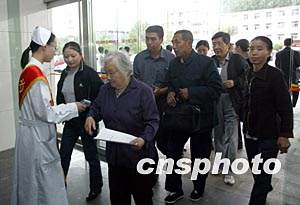 北京四月二十二日確診一例SARS疑似病例后,北京市迅速啟動相應的SARS預警機制,各家醫(yī)院二十三日對所有進入醫(yī)院的人實行嚴格的體溫測試。中新社記者:任晨鳴