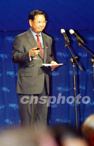 四月二十三日,海南省人民政府舉行宴會歡迎出席博鰲亞洲論壇2004年年會的嘉賓,海南省長衛(wèi)留成致祝酒辭。中新社記者:鄭萍萍