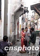 一對(duì)身著中式傳統(tǒng)服裝的青年男女在福州老城區(qū)“三坊七巷”里拍攝婚紗照。時(shí)下,越來(lái)越多的福州年輕人熱衷懷舊風(fēng)格的婚紗照。作者:鄭祚聲