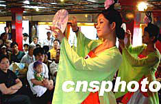 五一長假期間,參加“金廈海域游”的游客一邊乘船游覽金廈海域兩岸風(fēng)光,一邊觀賞民間歌舞表演,其樂融融。作者:劉可耕