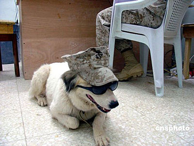 駐伊美軍士兵生活無聊,有些人只好以小狗相伴來打發(fā)時光。Ic/cnsphoto 攝