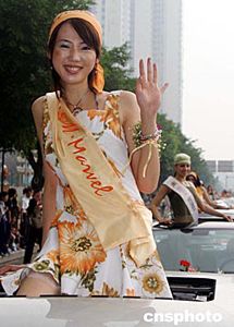 參加第十六屆世界模特小姐總決賽的世界各國參賽佳麗,五月十三日來到廣州進(jìn)行慈善巡游活動(dòng)。作者:史一博