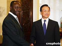 溫家寶說(shuō),目前中國(guó)與中非關(guān)系發(fā)展勢(shì)頭良好,各領(lǐng)域合作不斷加強(qiáng)。我們贊賞中非政府堅(jiān)持奉行一個(gè)中國(guó)的政策,只要雙方政治上相互尊重和互不干涉內(nèi)政,經(jīng)濟(jì)上相互支持和加強(qiáng)合作,積極推動(dòng)雙方在各領(lǐng)域的交流,兩國(guó)關(guān)系就一定能夠持續(xù)、穩(wěn)定、健康地向前發(fā)展。中國(guó)政府愿與中非政府為此共同作出努力。