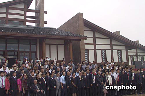 今天上午,來自五大洲三十一個國家的百余名海外華僑華人冒雨參觀鄧小平故居陳列館。在造型獨具匠心的陳列館前,他們與國務(wù)院僑辦、四川省、廣安市的官員合影留念。作者:楊杰