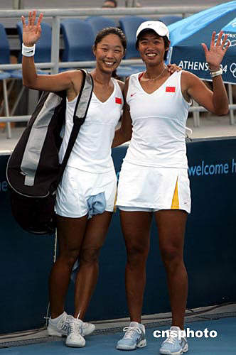 中新社雅典八月二十日電(記者 沈晨)李婷/孫甜甜今晚在雅典創(chuàng)造了中國網(wǎng)球界的新紀(jì)錄,她們二人在奧運(yùn)會網(wǎng)球女雙半決賽中耗時(shí)二小時(shí)十一分以二比一(六比二、二比六,九比七)戰(zhàn)勝阿根廷組合蘇亞雷茲/塔拉比尼闖入決賽,迄今中國選手在國際網(wǎng)球大賽中的最好成績。