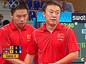 中新網(wǎng)8月21日電 在北京時(shí)間21日晚19:00開始的第28屆奧運(yùn)會(huì)乒乓球男子雙打決賽中,中國(guó)選手馬琳/陳玘以總比分4:2戰(zhàn)勝中國(guó)香港的高禮澤/李靜,為中國(guó)代表團(tuán)奪得了一枚金牌。
