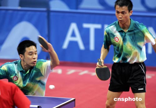 當(dāng)?shù)貢r(shí)間八月二十一日下午,香港選手李靜、高禮澤在男雙決賽中以1:4負(fù)于中國(guó)選手馬琳、陳玘,獲得本屆奧運(yùn)會(huì)男子雙打亞軍。中新社記者:任晨鳴