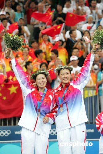 “黃穗抽筋了,我也該到修理廠大修了!备崚笑著和混雙搭檔張軍說道,張軍讓她多喝點(diǎn)水休息一下,“我喝了,可是不管用,還是累!”高崚/黃穗今日下午在雅典奧運(yùn)會(huì)羽球女雙決賽中一比二不敵隊(duì)友楊維/張潔雯獲得銀牌,體力嚴(yán)重透支是高崚/黃穗失利的主要原因之一。