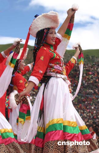 身披價(jià)值上百萬飾品的專業(yè)藏族服飾表演隊(duì)引來全場喝彩。