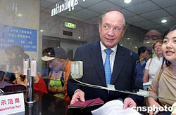 八月二十三日,上海公安局出入境管理局根據(jù)《外國人在中國永久居留審批管理辦法》,開始正式受理駐滬外國人在中國永久居留的申請。圖為西門子(中國)有限公司執(zhí)行副總裁博格在提交申請表。作者:湯彥俊