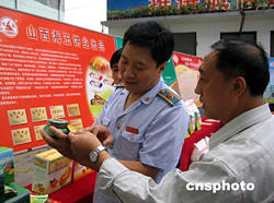 開(kāi)展保護(hù)注冊(cè)商標(biāo)專(zhuān)用權(quán)整治行動(dòng),是中國(guó)國(guó)務(wù)院今年工作要點(diǎn)的一項(xiàng)重要內(nèi)容,也是全國(guó)工商系統(tǒng)今年整頓規(guī)范市場(chǎng)和經(jīng)濟(jì)秩序的重點(diǎn)之一。山西工商系統(tǒng)集中開(kāi)展了查處涉外商標(biāo)案件及食品、藥品商標(biāo)案件。圖為在八月二十三日召開(kāi)的“打商標(biāo)侵權(quán),保知識(shí)產(chǎn)權(quán)”現(xiàn)場(chǎng)會(huì)議上,榆次工商系統(tǒng)執(zhí)法人員介紹受到工商部門(mén)保護(hù)的地方著名商標(biāo)及名優(yōu)產(chǎn)品。作者:張?jiān)?
