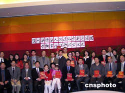 北京市海外聯(lián)誼會(huì)會(huì)長(zhǎng)、北京華僑華人共建奧運(yùn)場(chǎng)館副主任尤藍(lán)田(前排左6)、中國駐悉尼代總領(lǐng)事杜慰(前排左4)和悉尼華人社團(tuán)領(lǐng)袖,8月24日晚向澳大利亞華人華僑共建2008北京奧運(yùn)場(chǎng)館“水立方”的第一批82名捐助者頒發(fā)榮譽(yù)證書并合影留念。據(jù)悉,海外華僑華人已經(jīng)認(rèn)捐7500萬美元,實(shí)際到帳1500萬美元。她代表北京市政府對(duì)華人華僑的大力支持表示感謝。作者:劉雨生