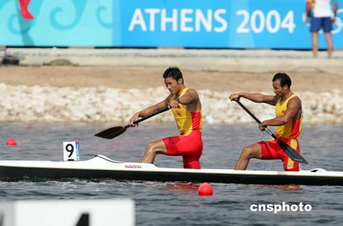 當(dāng)?shù)貢r間八月二十七日,在雅典奧運會男子雙人劃艇一千米比賽中,中國選手孟關(guān)良、楊文軍獲得第九名。中新社記者:毛建軍