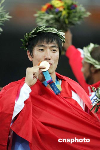 今晚,劉翔摘下中國田徑史上分量最重的一枚奧運金牌,點燃中國田徑新希望。
