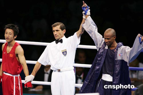 當(dāng)?shù)貢r間8月27日,中國選手鄒市明(左)在奧運(yùn)會拳擊男子48公斤級半決賽中,負(fù)于古巴強(qiáng)手揚(yáng)·巴特雷米,無緣決賽。由于奧運(yùn)會拳擊比賽不再進(jìn)行三四名的爭奪,因此鄒市明已經(jīng)獲得銅牌。這是中國拳手在奧運(yùn)會上歷史性的突破,中國拳手此前在奧運(yùn)會上從未進(jìn)入過前4名。中新社記者:毛建軍