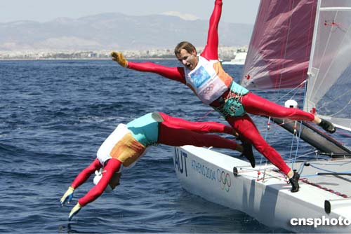 在當?shù)貢r間28日,奧地利選手哈加拉和斯泰納切在帆船帆板龍卷風型比賽中獲得冠軍。