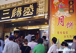 九月二日,滬上一家月餅廠家推出新品吸引眾多市民排隊(duì)爭(zhēng)購(gòu)。雖然中秋未至,但是上海諸多月餅廠家競(jìng)相推出新品絕招,希冀搶占一年一度的月餅市場(chǎng)。作者:潘索菲