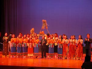 越南藝術團的演員舞臺經(jīng)驗都十分豐富,他們曾多次代表越南赴法國、美國、日本、印度、泰國、伊拉克等國演出。昨日的演出中,他們也給中國觀眾帶來了富有越南民族特色的精彩表演。民族器樂演奏家黃春平用一根琴弦奏出了豐富的音調(diào),而男高音何孟鐘和阮文俊的歌聲引來在場觀眾的陣陣掌聲,其中阮文俊用漢語演唱的《我愛你中國》贏得了中國觀眾的齊聲喝彩。舞蹈演出是昨晚的重頭戲,參加此次演出的舞蹈演員大多有在歐洲學習的經(jīng)歷,在表演的民族舞蹈中也巧妙融合了西方舞蹈動作。