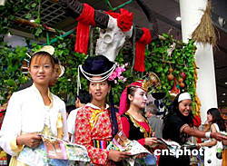 身穿各個民族服裝的旅游宣傳推銷員,成為九月三日在山東省城濟南開幕的二00四中國(濟南)國際旅游交易會上的一大亮點。作者:宋衛(wèi)東