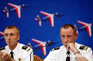 中新網(wǎng)9月7日電 日前,法國空軍飛行表演隊(duì)先遣組組長讓·馬克在北京透露,“法蘭西巡邏兵”飛行表演隊(duì)10月將隨希拉克總統(tǒng)到訪北京,在北京南苑機(jī)場舉行兩場表演,然后赴武漢、珠海、香港巡演。法蘭西巡邏兵是世界五大特級(jí)飛行隊(duì)之一,此次隨總統(tǒng)出訪是第一次。表演隊(duì)使用阿爾法噴氣教練機(jī)。此次表演由國防部外事辦公室和空軍有關(guān)單位主辦。中新社記者:鄭萍萍