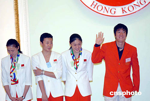9月6日,香港特區(qū)行政長官董建華在禮賓府舉行盛大歡迎酒會,歡迎為中國奪得32面金牌的中國運(yùn)動員。