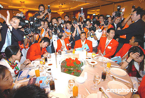 港體協(xié)暨奧委會會長霍震霆在致辭時說,國家隊取得歷史性的最好成績,每塊獎牌背后都包含著教練、選手及其他工作人員的汗水、努力。香港乒乓雙打所奪得的銀牌是香港回歸后的第一面奧運獎牌。運動員的這些佳績,除了令香港市民引以為傲外,亦希望能由此喚起香港市民對體育運動的關(guān)注及支持,并吸引更多有潛質(zhì)的專業(yè)人士投身體育事業(yè),為二OO九年的香港東亞運動會作出最佳準備。