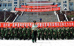 | 今年九月,重慶市云陽(yáng)各中小學(xué),為培養(yǎng)學(xué)生良好的行為習(xí)慣和學(xué)習(xí)紀(jì)律及增強(qiáng)學(xué)生的體質(zhì),在開(kāi)學(xué)后,聘請(qǐng)縣一批武警、消防中隊(duì)官兵,在校園里對(duì)新生學(xué)生進(jìn)行系列化的軍訓(xùn)。近兩年來(lái),移民搬遷學(xué)校環(huán)境改善,學(xué)生增加,他們已為這些學(xué)校軍訓(xùn)新生三千四百多人次,此次三百多名新生,將進(jìn)行七天軍訓(xùn)。作者:饒國(guó)君