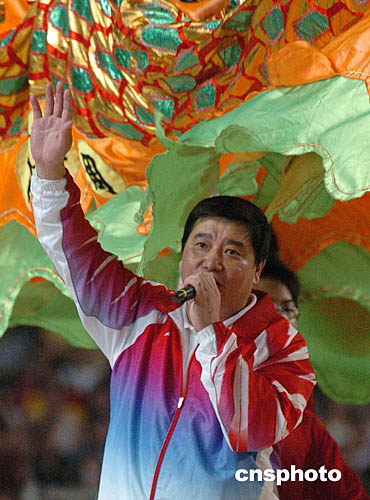 為歡迎國家奧運(yùn)金牌代表團(tuán)訪港,九月七日香港舉行“金牌精英大匯演”,奧運(yùn)射擊金牌得主王義夫在“金牌精英大匯演”演唱。中新社記者:錢興強(qiáng)