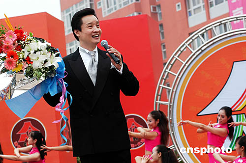 教師節(jié)前夕,中央電視臺在北京吉利大學(xué)錄制教師節(jié)晚會,中國著名的軍旅歌手閻維文為晚會演唱主題歌--《心聲》,慶祝第二十個(gè)教師節(jié)的到來。中新社記者:王麗南
