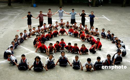 9月10日,南京上新河中心小學(xué)的60名學(xué)生在操場上自發(fā)手拉手組成一個“心”,以此來表示師生之間的“心心相應(yīng)”,向教師節(jié)獻(xiàn)上一份特殊而又有意義的禮物。作者:江南