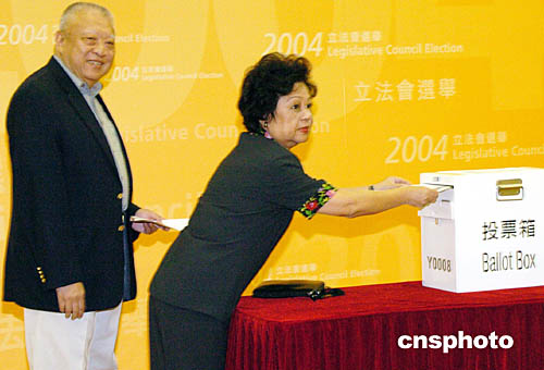 中新社香港九月十二日電(記者陶社蘭)香港特區(qū)第三屆立法會選舉今天進(jìn)行投票,全港五百零一個(gè)投票站今早七時(shí)三十分至晚上十時(shí)三十分開放,供逾三百二十萬名選民投票。香港特區(qū)行政長官董建華及其他官員參加投票,履行公民的職責(zé)。