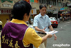 香港9月12日舉行2004年立法會選舉投票日,各候選人在各選區(qū)出動助選團拉票,作最后沖刺。作者:洪少葵