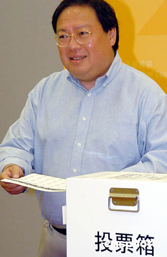 特區(qū)行政長官董建華、政務司司長曾蔭權、政制事務局局長林瑞麟、民政事務局局長何志平等政府高官今日一早紛紛到所屬選區(qū)投下莊嚴一票,以身作則一盡公民責任。