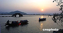 正在浙江舉行的第七屆中國藝術節(jié)將于九月二十六日晚在紹興舉行閉幕式。圖為夕陽中的紹興古鑒湖。浙江紹興乃江南名城,素有“水鄉(xiāng)澤國”之稱,水巷彎彎,流韻蕩漾,是一座具有兩千四百多年歷史的文化名城。作者:袁胤