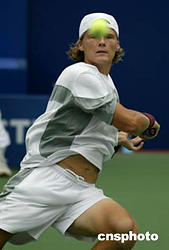 九月十四日,在北京網(wǎng)球中心中央球場(chǎng)舉行的中國(guó)網(wǎng)球公開(kāi)賽ATP男子單打比賽中,澳大利亞選手盧克扎克以零比二的比分不敵美國(guó)網(wǎng)球選手丹特。圖為盧克扎克在比賽中。中新社記者:盛佳鵬