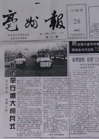 媒體稱6年前《亳州報(bào)》曾記述市委書記閱兵"盛況"