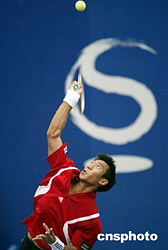 九月十五日,中國網(wǎng)球公開賽ATP男子單打比賽在北京網(wǎng)球中心的中央球場進行,有亞洲男子單打網(wǎng)球頭號選手之稱的泰國選手斯里查潘,以六比四和七比五艱難戰(zhàn)勝法國選手利斯納德,晉級下一輪比賽。中新社記者:盛佳鵬