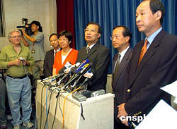 圖為會后譚耀宗向新聞界作簡單匯報。