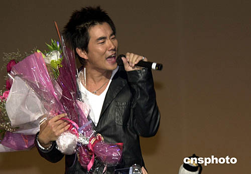 圖為應(yīng)邀擔(dān)任此次大賽嘉賓的中國臺灣著名歌手任賢齊在演唱助陣。