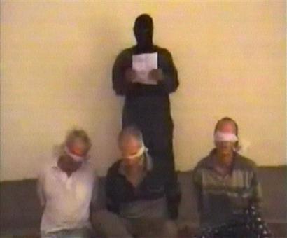 此外,“統(tǒng)一與圣戰(zhàn)”組織當(dāng)天也要挾稱,如果美軍不在48小時(shí)內(nèi)釋放被關(guān)押在阿布格萊布監(jiān)獄和另一所監(jiān)獄里的伊拉克女囚犯,他們將殺死綁架的2名美國(guó)人和1名英國(guó)人。