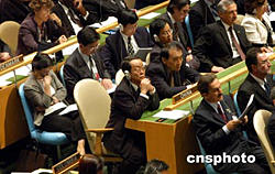 為推動(dòng)日本成為安理會(huì)常任理事國(guó)而來(lái)的日本首相小泉,今天下午在一般性辯論中發(fā)言。正如人們預(yù)料的,他直奔主題,表示日本已經(jīng)發(fā)揮的作用奠定了使它成為安理會(huì)常任理事國(guó)的基礎(chǔ)。小泉還呼吁修改《聯(lián)合國(guó)憲章》,取消其中有關(guān)日本是敵國(guó)的內(nèi)容。