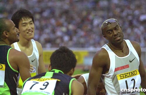 阿蘭·約翰遜今天也著實盡了力,他獲得季軍的成績?yōu)槭胨囊,最后與劉翔僅差一臂之遙。再次落敗于后輩高手之后,他十分大度地笑著與劉翔握手,表示祝賀。